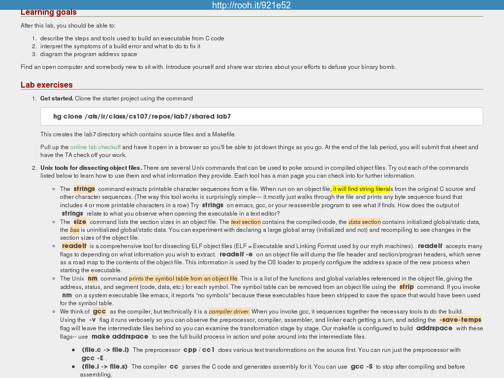 Highlights on web.stanford.edu/class/cs107/lab7.html :: Rooh it - Collection-new ::